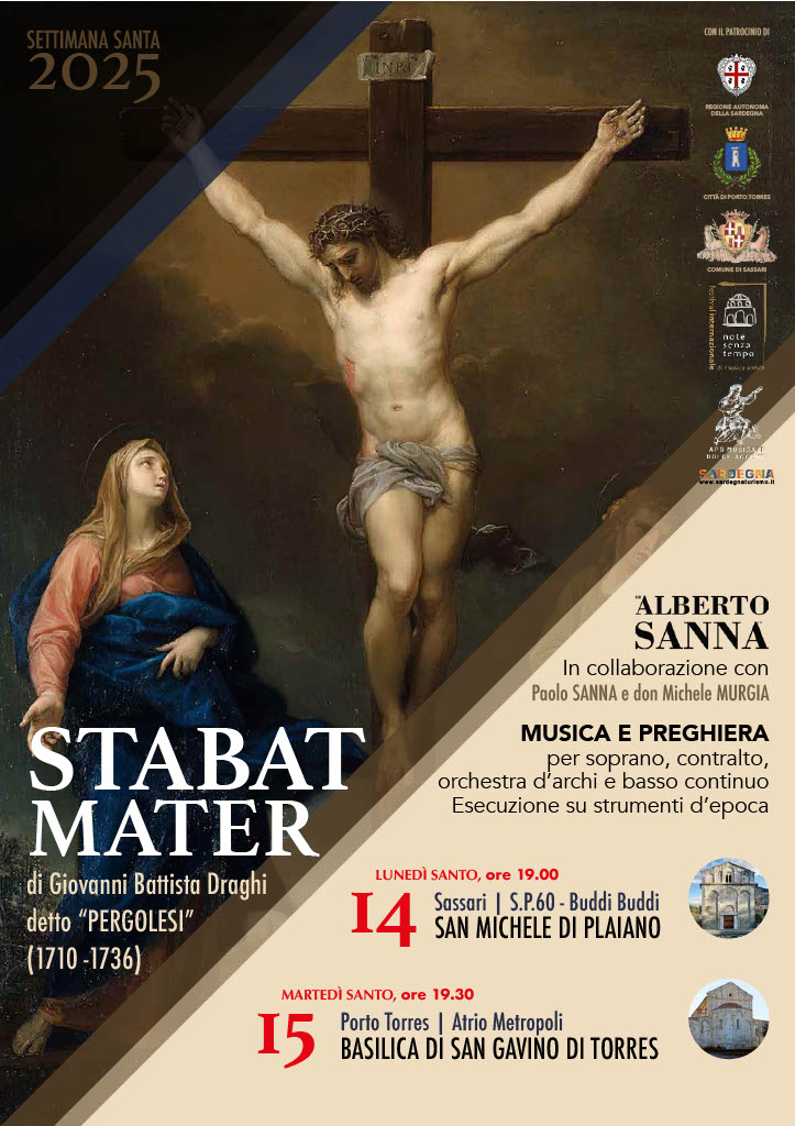 Alberto Sanna, in collaborazione con Paolo Sanna e don Michele Murgia, proporrà lo Stabat Mater di Giovanni Battista Pergolesi (1710–1736).