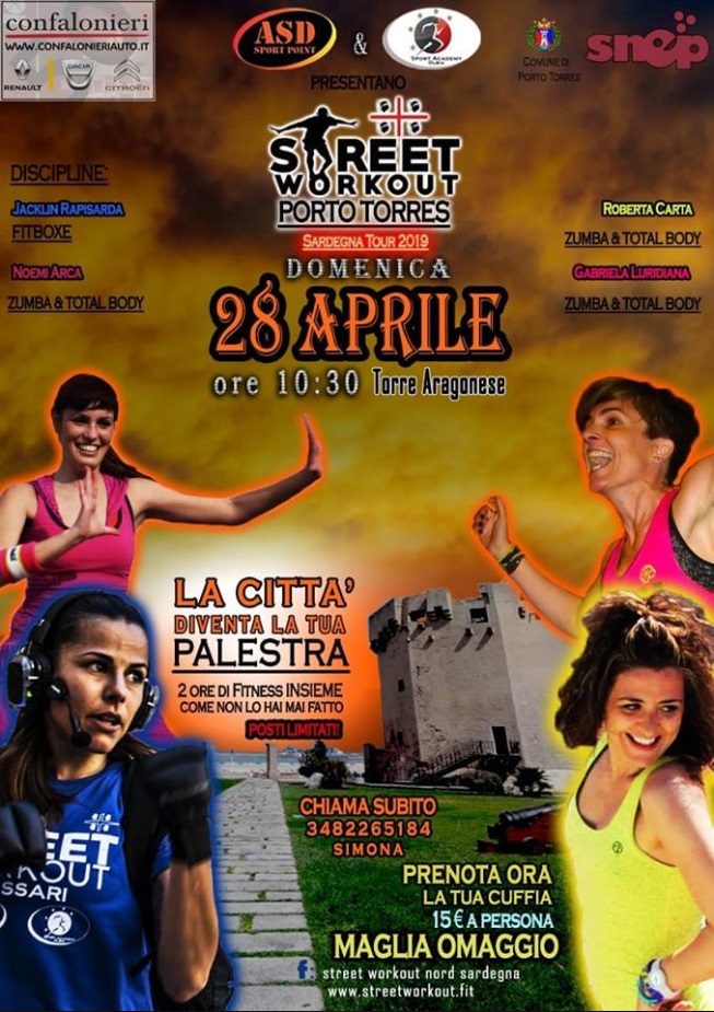 Asd Sport Point e Sport Academy Olbia presentano Street Work Out Porto Torres, evento realizzato in collaborazione con Snep e Confalonieri.