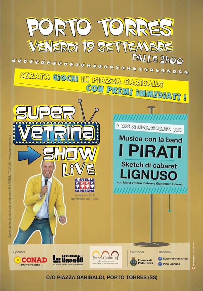 A Porto Torres due ore di divertimento con giochi e premi immediati, cabaret con Pino Lignuso, Maria Vittoria Pintore e Gianfranco Corona e musica dal vivo con la band "I pirati".