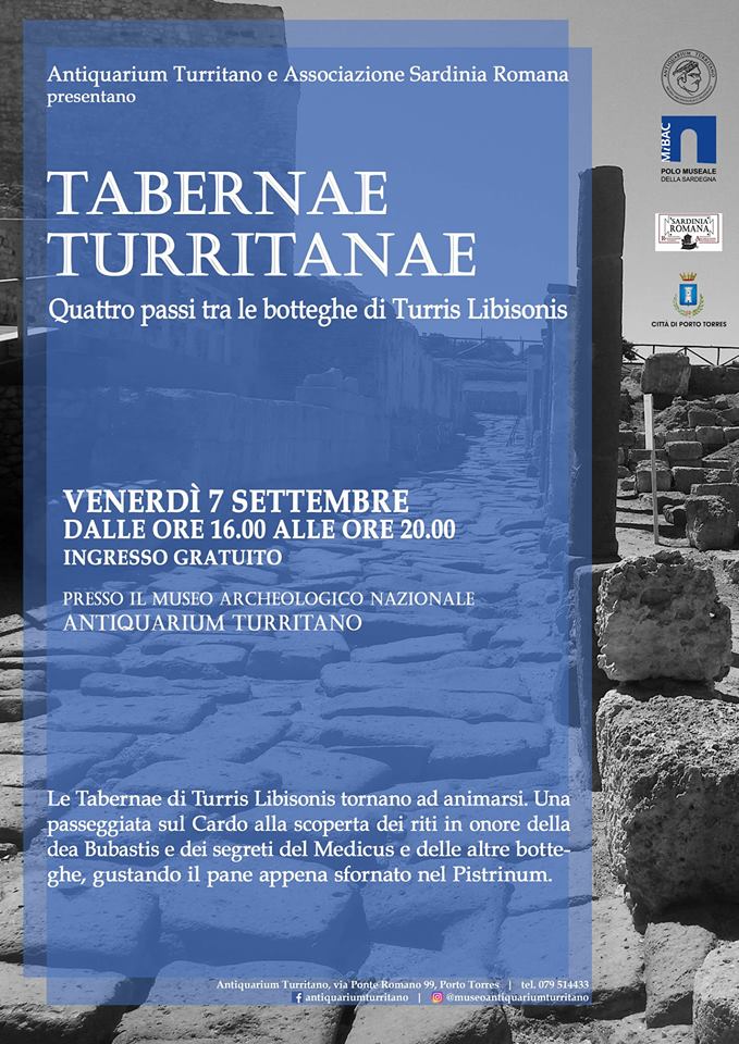 A cura del Polo Museale della Sardegna - Museo archeologico nazionale Antiquarium Turritano, in collaborazione con l'Associazione Sardinia Romana. Patrocinio: Comune di Porto Torres.
