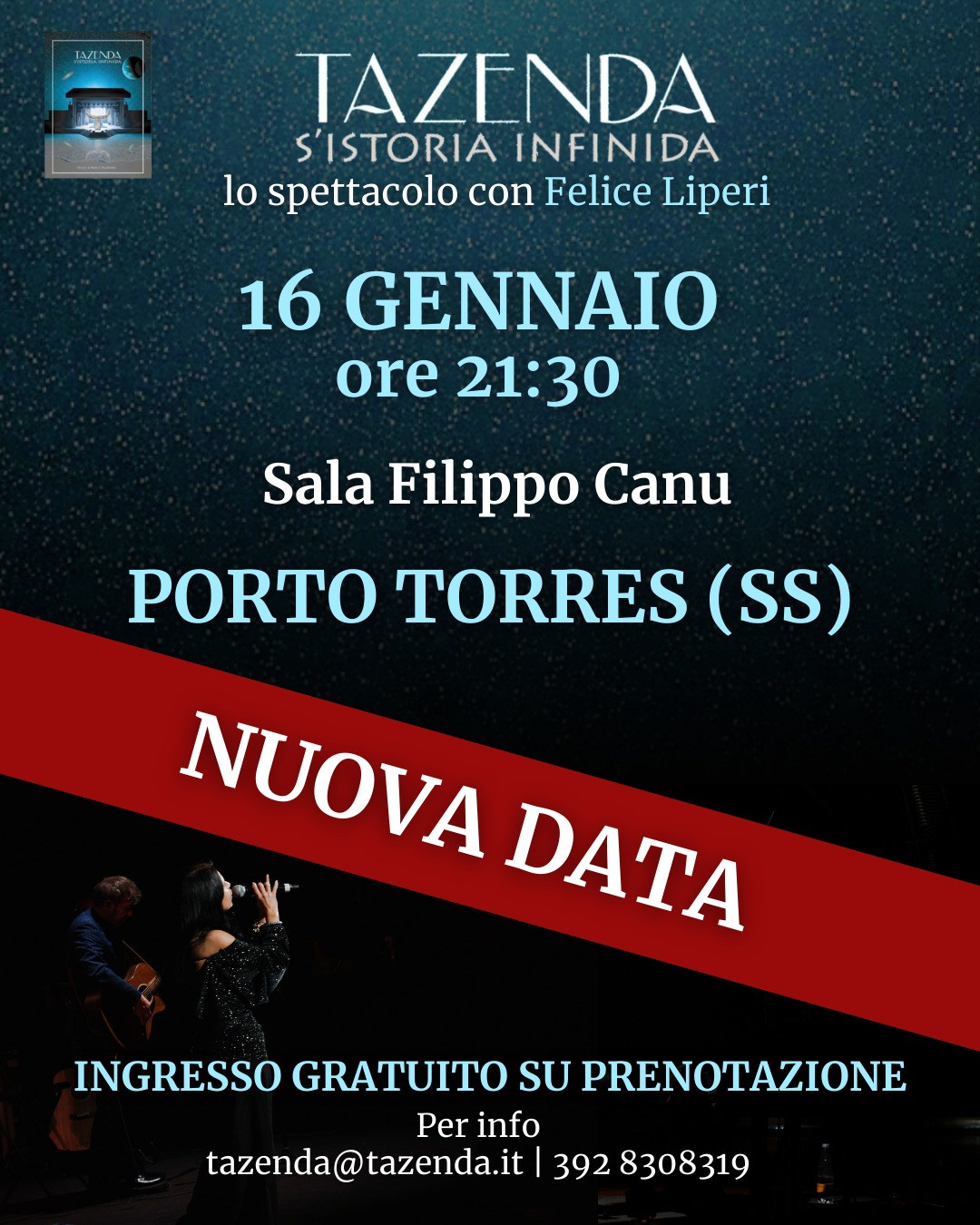 S’istoria infinida è il titolo del libro che racconta la storia dei Tazenda che sul palco diventa un racconto condiviso tra i Tazenda e Felice Liperi, dove musica e parola si intrecciano, grazie alla collaborazione diretta tra l’autore e i musicisti. Sul palco, Felice Liperi partecipa attivamente allo spettacolo, dialogando con Gino Marielli e Gigi Camedda, attraverso letture, ricordi e frammenti narrativi che danno vita e voce alla storia contenuta nel libro.