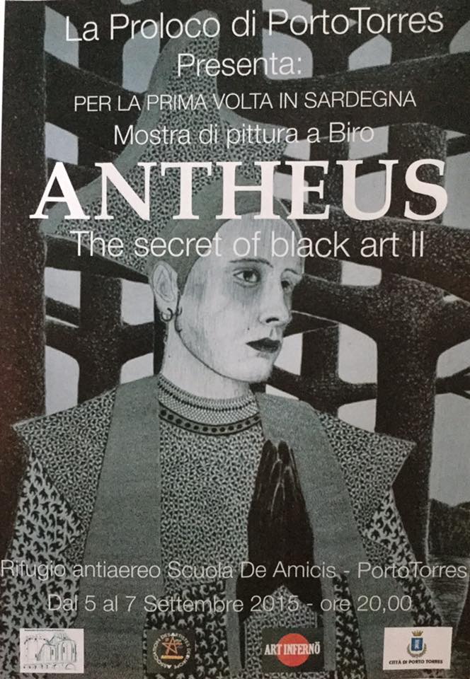 La Proloco di Porto Torres, col patrocinio del Comune di Porto Torres, presenta la mostra di pittura a biro di Jeanfrancois Pugliese, in arte "Antheus", dal titolo "The secret of black art II".