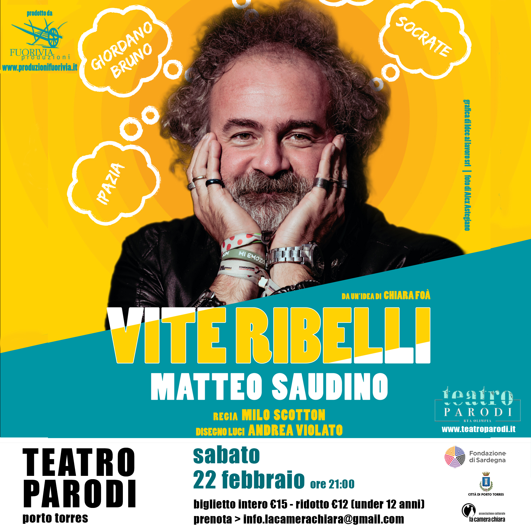 Prosegue la stagione teatrale organizzata da la Camera Chiara al Teatro A. Parodi con lo spettacolo Vite ribelli, il nuovo spettacolo di e con Matteo Saudino, il mitico barbasophia. si tratta di uno spettacolo sul coraggio di pensare e sulla forza ribelle della filosofia