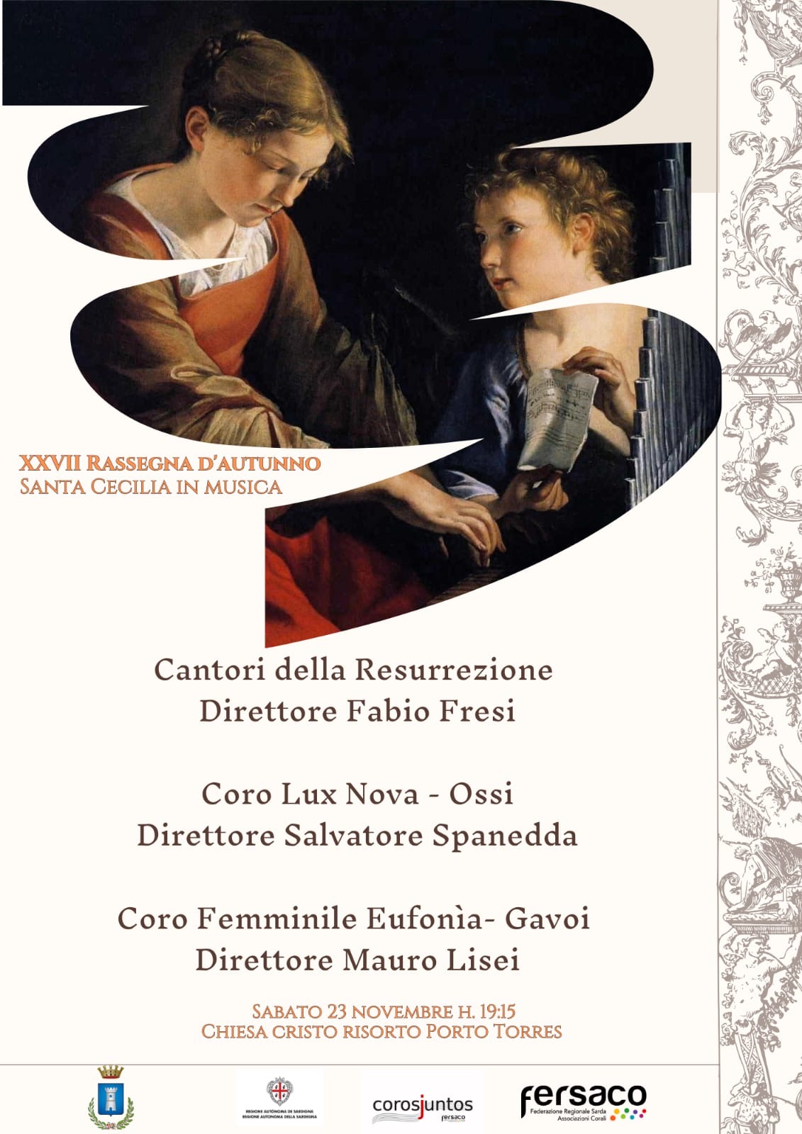I Cantori presentano la XXVII edizione della Rassegna d’Autunno – Santa Cecilia in Musica che rappresenta, da tanti anni, un’occasione per immergerci in un viaggio musicale che attraversa il tempo e si declina nelle sue varie forme, dalla musica antica, alla musica contemporanea passando attraverso il nostro territorio con le musiche tradizionali e popolari della polifonia sarda. La serata è inserita nel programma “Corosjuntos” promosso dalla Fersaco.