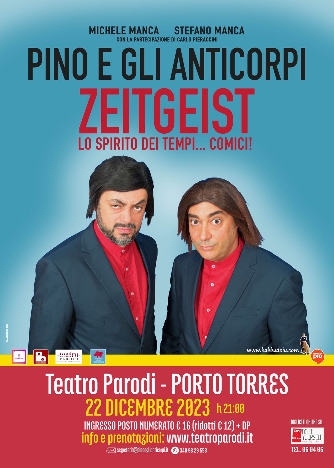 Dal cabaret al Clown passando per brevi monologhi, un omaggio all’avanspettacolo e al “comico-spalla”, il meglio del duo sardo “Pino e gli Anticorpi” - al secolo Michele e Stefano Manca - i cui personaggi più famosi sono accompagnati dal musicista Carlo Pieraccini, in un caleidoscopio di umorismo surreale, una rappresentazione dell’umana follia, uno spettacolo comico sui tempi comici!